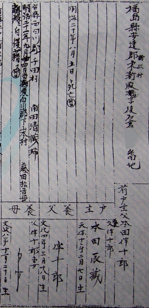高祖父・藤田松吉(1853~1937)は、明治20(1887)年に千田を離れて東白川郡下山本村松原(現在の棚倉町下山本)へ転籍。